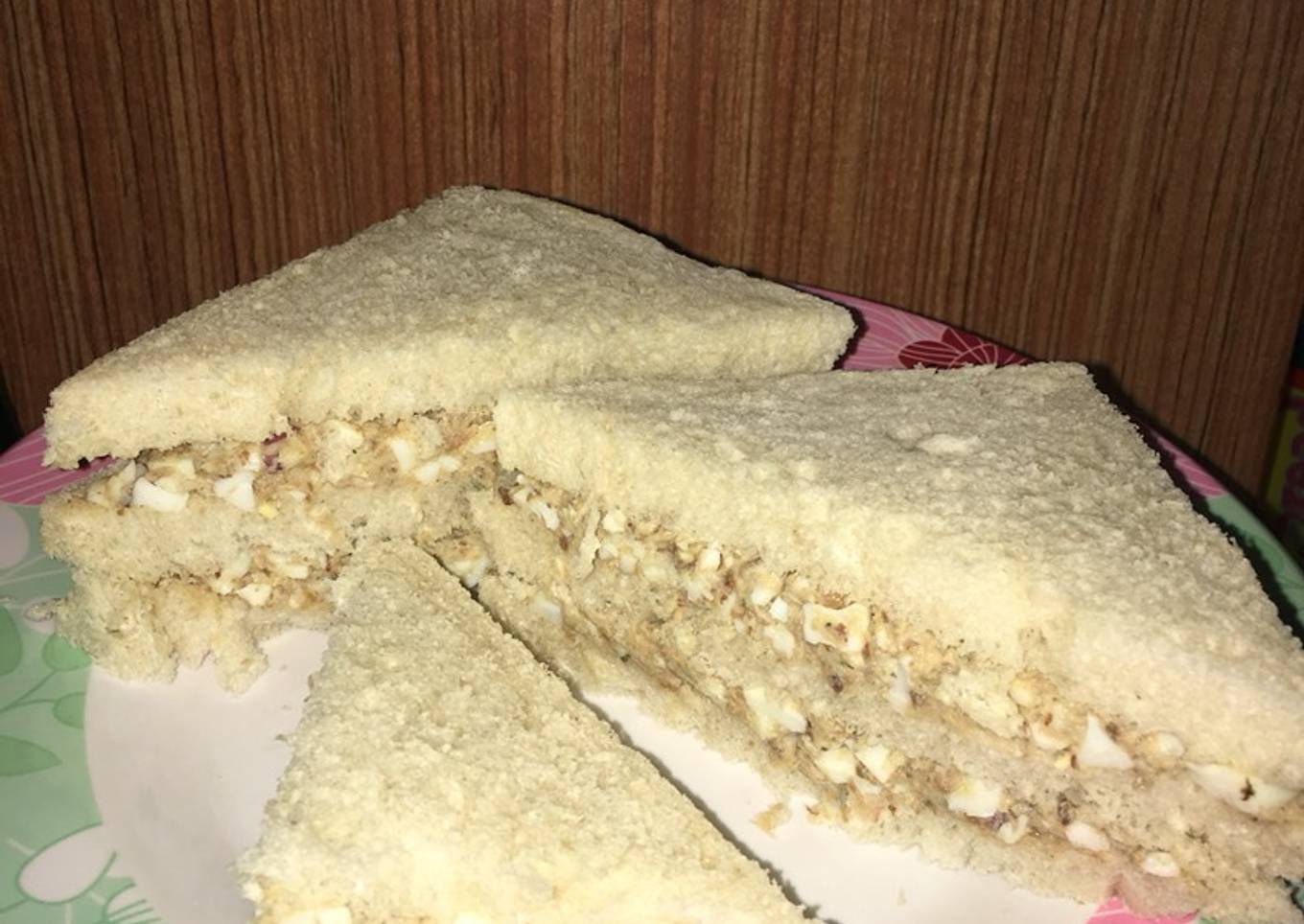 - Remove the sides of the bread and keep aside. In a bowl put out the sardines from the tin but without the oil. Cut open the sardine and remove the middle bone then mash it. Unshell the boiled eggs and cut into tiny pieces and mash together with the sardines. Chop little onions into tiny pieces and add, then add seasonings and salad cream then mix thoroughly. Put mixture on bread slices and cover with another slice, then cut into triangle.