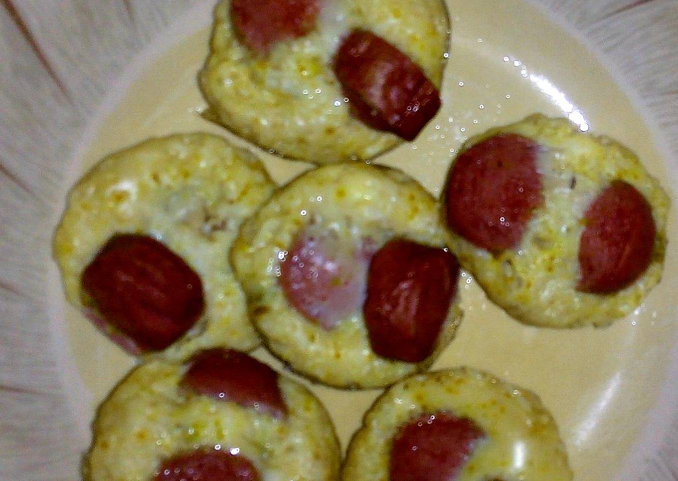 - Fill the prepared tin with potato mixture and put sausage on top, place in the mini oven and bake for 15 to 17 minutes untill puffed and golden.