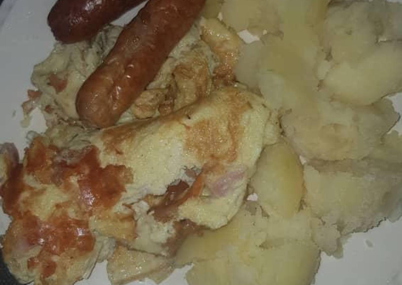 - Serve with fried sausages and fried egg.
